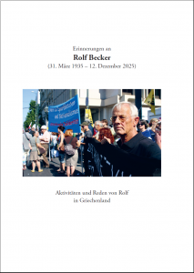 Ein weiteres Beispiel für Rolfs Aktivitäten sind die 2012 aufgenommenen Solidaritätsbesuche und Gegenbesuche nach und aus Griechenland. Wir dokumentieren mit folgender Broschüre einen kleinen Teil von seinen Aktivitäten und Reden in Griechenland. Die Art und Weise, wie er sein Talent und seine Fähigkeiten in Sinne der internationalen Solidarität nutzte, werden darin sichtbar. Für sein jahrzehntelanges Engagement wurde Rolf am 12. April 2025 von der Tageszeitung Junge Welt als erstem Preisträger der Rosa-Luxemburg-Preis verliehen.